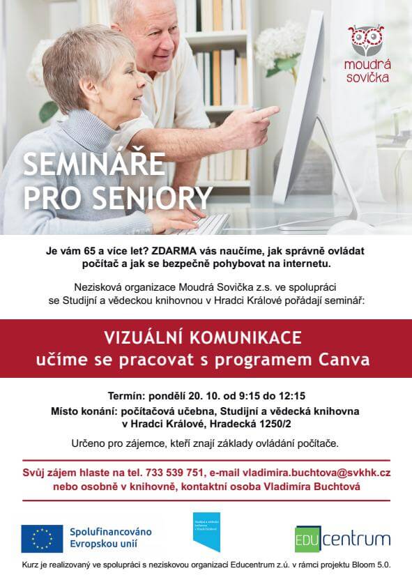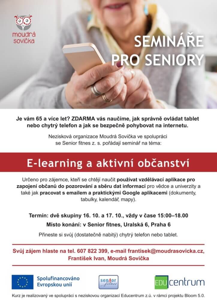 seminářů, za podpory Hlavního města Prahy 123 proškolených seniorů, 10 prezenčních seminářů,
